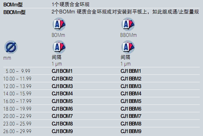 ● 塞規(guī)的直徑:0.050到0.300mm