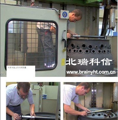 當測量笨重的發動機部件時這個組合是非常有價值的,如燃 燒室,擴壓器或低壓渦輪殼體.當工件過于沉重時把工件運到三坐標測量檢測不太現實, tesa unimaster就發揮了自己 的價值.